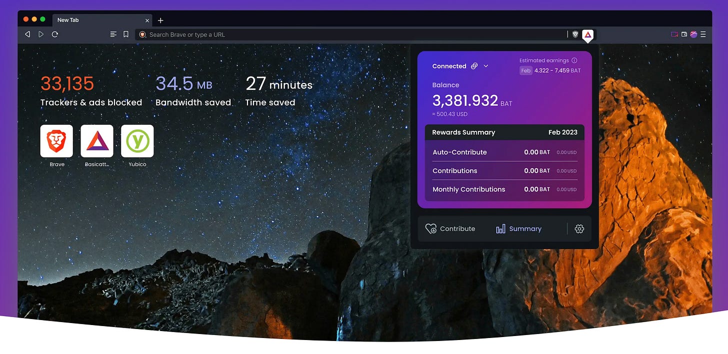 Brave Browser allows users to earn tokens by opting into privacy-respecting ads.